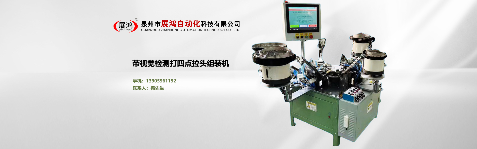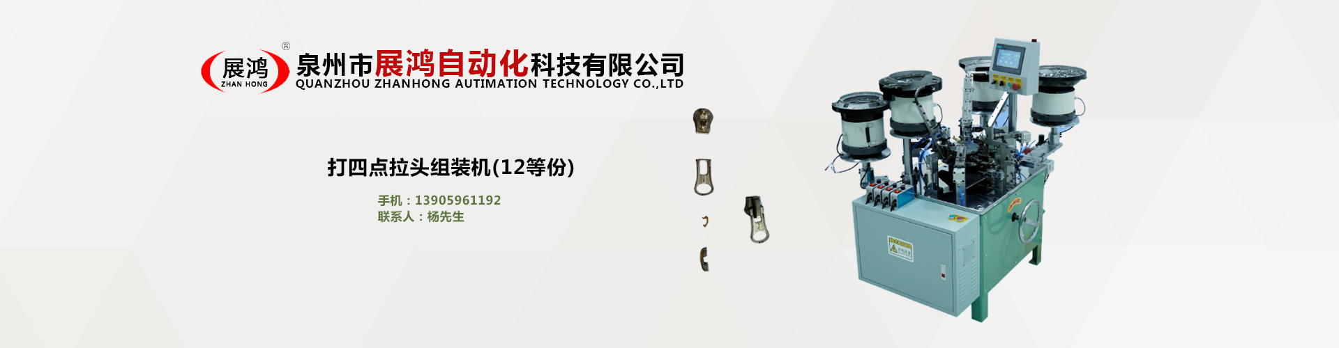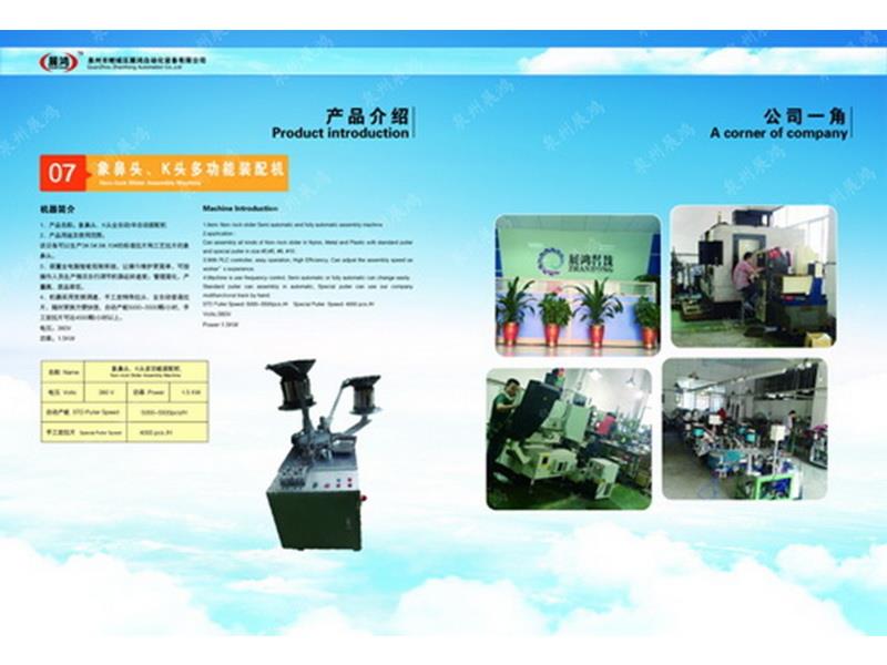 ??泉州市展鴻自動化科技有限公司始創(chuàng)于2003年,是一個集研發(fā)、制造、銷售為一體的現(xiàn)代化公司,專業(yè)從事研發(fā)、生產(chǎn)各類型號的全自動拉鏈頭裝配機。泉州市展鴻自動化科技有限公司始創(chuàng)于2003年,是一家集研發(fā)、生產(chǎn)、銷售、服務(wù)于一體的現(xiàn)代化拉鏈頭設(shè)備智能制造生產(chǎn)企業(yè):專業(yè)從事研發(fā)、生產(chǎn)各類型號的全自動拉鏈頭智能裝配機。亦可根據(jù)不同客戶的需求,提供適合客戶自身需要的“私人定制”式專用拉鏈頭設(shè)備及自動檢測拉頭品質(zhì)一體機。泉州市展鴻自動化科技有限公司始創(chuàng)于2003年,是一家集研發(fā)、生產(chǎn)、銷售、服務(wù)于一體的現(xiàn)代化拉鏈頭設(shè)備智能制造生產(chǎn)企業(yè):專業(yè)從事研發(fā)、生產(chǎn)各類型號的全自動拉鏈頭智能裝配機。亦可根據(jù)不同客戶的需求,提供適合客戶自身需要的“私人定制”式專用拉鏈頭設(shè)備及自動檢測拉頭品質(zhì)一體機。